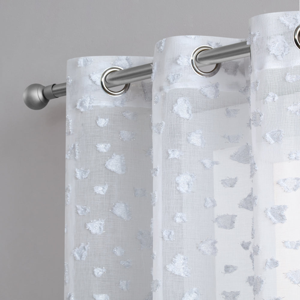 Bring effortless luxury into your living room, dining room, office, or bedroom with the Juicy Couture Ethel Embellished Sheer Curtains. Juicy Couture’s distinct and chic style will instantly elevate any room in your home’s decor. These fun, specially woven curtains are sheer, allowing for soft light to pour in and envelop your space in warmth. Each panel features an all-over abstract animal design with texture-raised borders and metallic embellishments