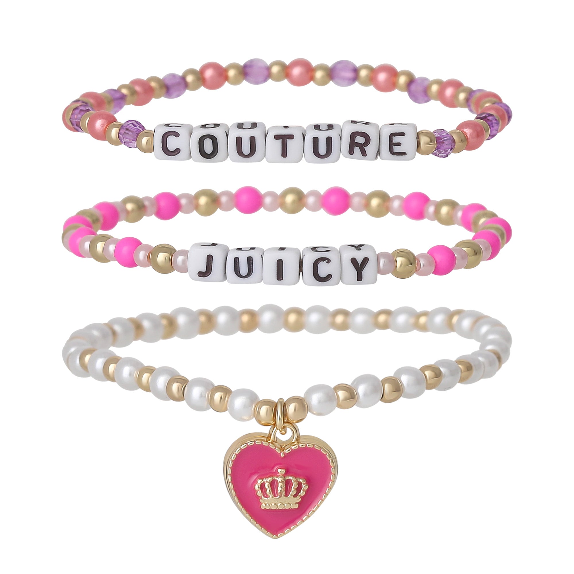 Kids Choose Juicy Heart Charm 3 Piece Beaded Bracelet Set