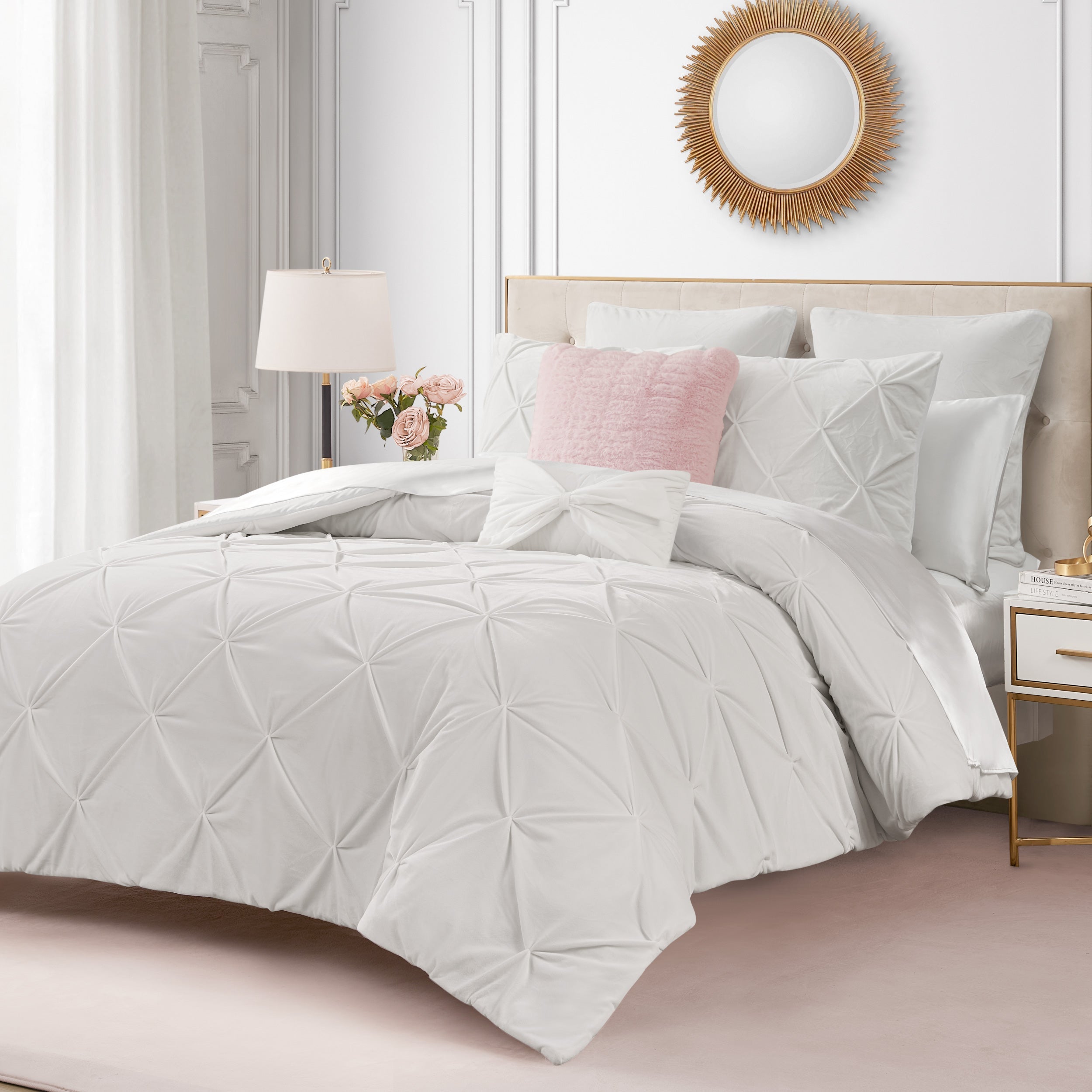 Kiss Pleat Micromink Comforter Set With Decorative Pillows