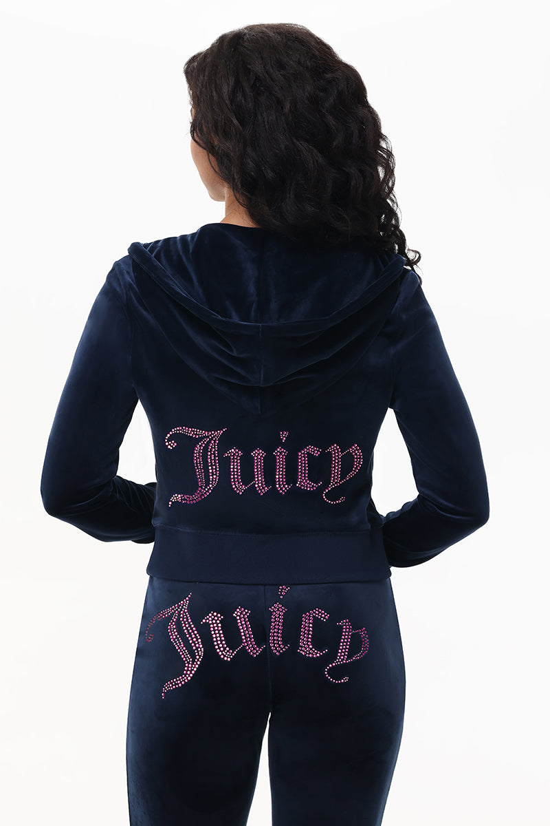 Wrap yourself in our reimagined Y2K hoodie. Made to order for each customer, bling out the back of your velour hoodie in the rhinestone of your choice.