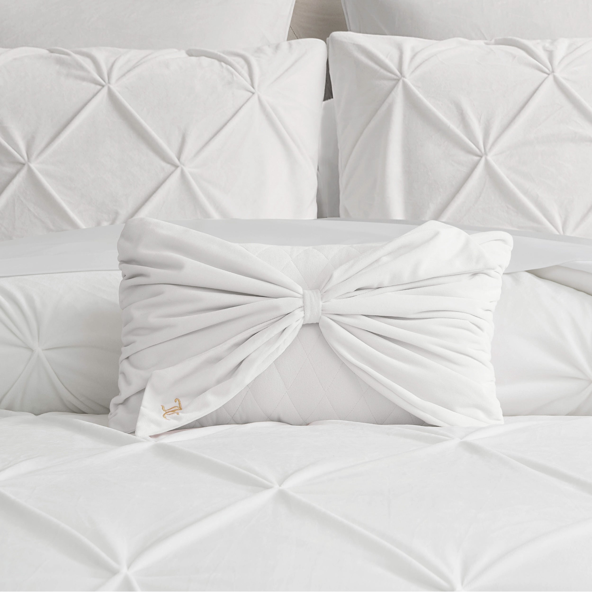Add a hint of feminine glamour to any bedroom, living room, or home office with this decorative pillow. Featuring a quilted texture and sophisticated velvet bow, she adds personality to any space.